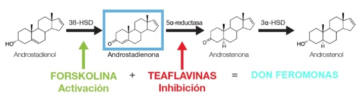 Aumenta la expresión del enzima 3ß-HSD, estimulando la producción de androstadienonaTeaflavinas: